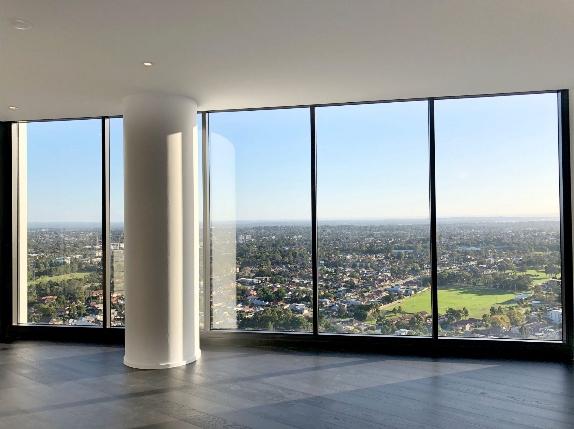 - Open-plan living area basking in natural light, enhanced by floor-to-ceiling windows and incredible skyline views
