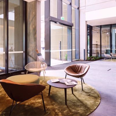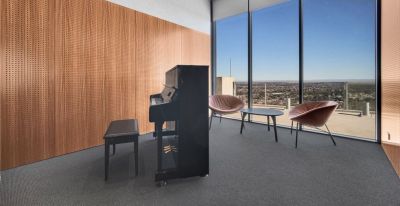 - Resident facilities include a rooftop entertaining area, communal BBQs, a music room, virtual golfing suite