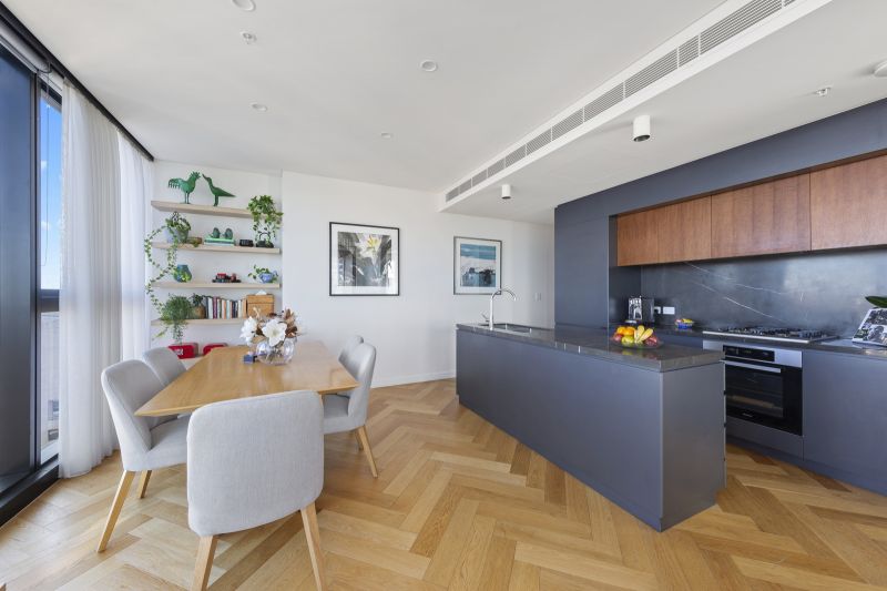 Indulge in the ultimate luxury lifestyle with this bright and airy two-bedroom apartment, perfectly positioned in the sun-drenched Northeast corner of the highly sought-after Greenland Centre. This contemporary residence, designed by award-winning architects Woods Bagot and BVN, offers awe-inspiring panoramic views of the harbour and the surrounding eastern suburbs.